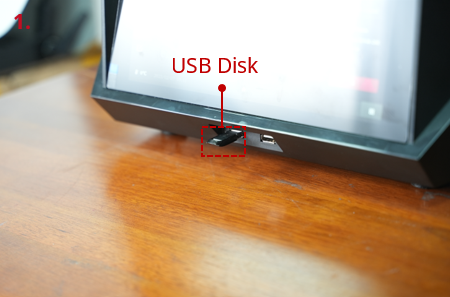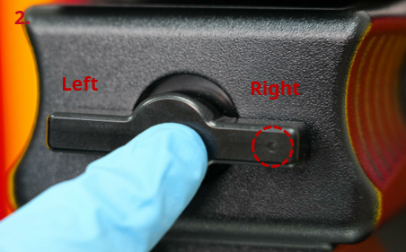 c) Touching the unlock icon on the touchscreen will automatically unlock the smart build platform; Alternatively, as shown in the figure 1, take out the key from the key slot, insert it into the smart build platform keyhole (as shown in the red circle in the figure 2, the directional hole on the key is on the right), turn the key clockwise, and when the directional hole is pointing to the left, the smart build platform is unlocked.
