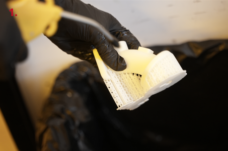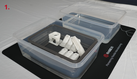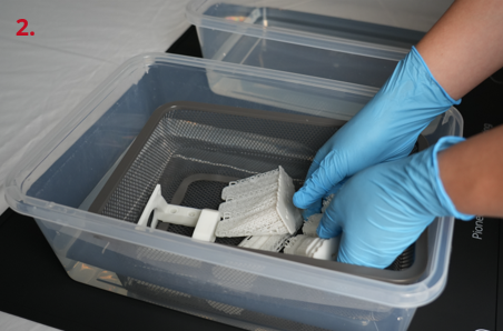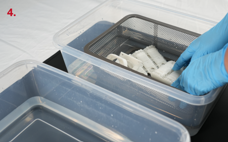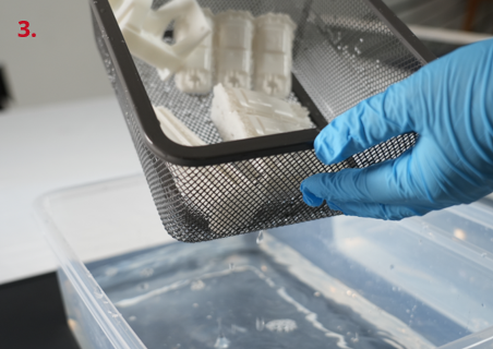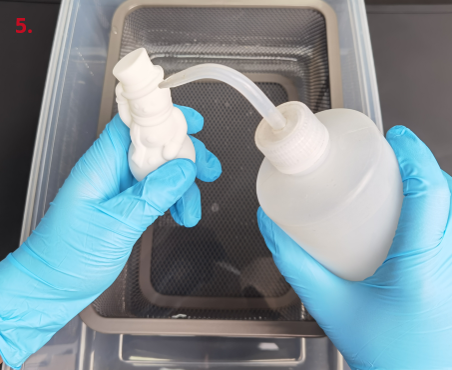 Place the washing basket together with the models into the other washing box with cleaning solvent for another careful round of washing.