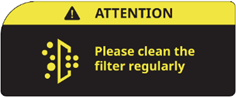 The filtration system will filter the odor and tiny particles produced by printing. To ensure the printing chamber maintains an acceptable level of cleanliness, please replace the filter element regularly. Below there is an illustration of the sign on the device to remind you to replace the filter element regularly: