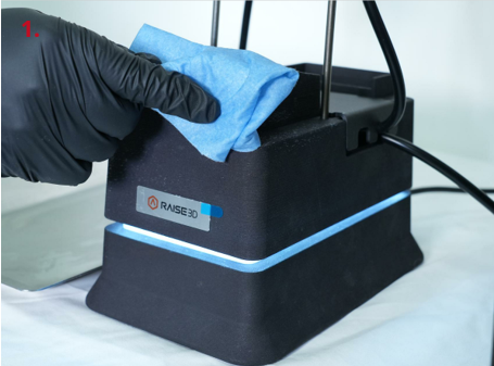 e) Use a piece of lint-free cloth with alcohol to clean the residual resin on the smart build platform.