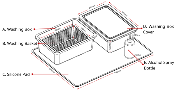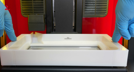 l Manually wash the uncured liquid resin on the surface of the models by using the provided finish box (as shown in the figure below) and the isopropanol (IPA) as the cleaning solvent.