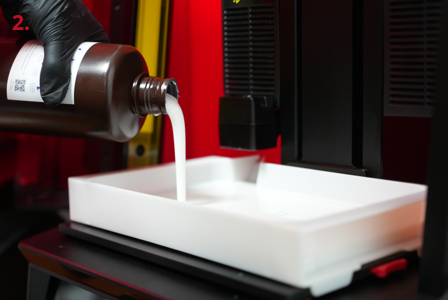 Pour an appropriate amount of liquid resin into the resin tank without exceeding the maximum capacity mark.