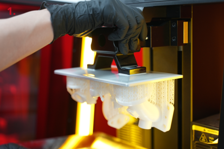 When all surfaces of the models are completely cleaned and dried, place them in a post-curing machine for secondary curing.
