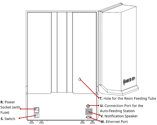 The DF2+ is equipped with an auto-feeding station, which allows users to automatically add resin. For details, please refer to the "Raise3D DF2 Auto-Feeding Station User Guide".