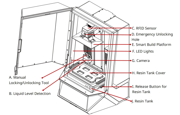 I. Release Button for Resin Tank