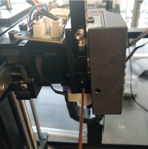 4.Use a 2 mm hex wrench, remove the two screws securing the extruder connection board to the print head.
