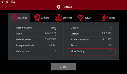 2. In the “Machine” tab, select the “More Settings” in the lower right corner of the page.