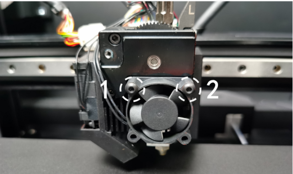 2.Power off. Remove the front fan cover using a 2mm hex wrench.
