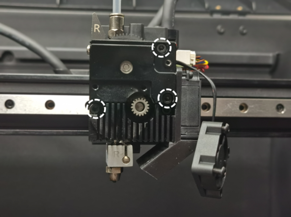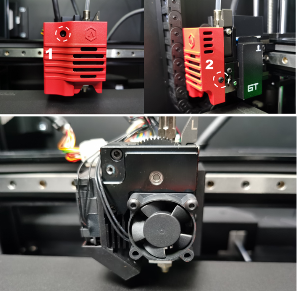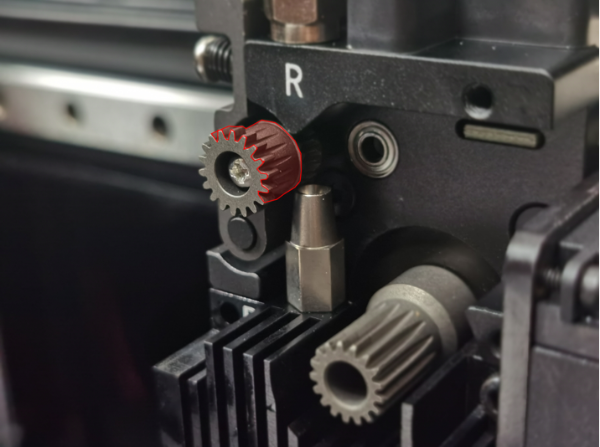 7.After removing the jam, reinstall the big gear, gear cover, extruder front cooling fan, and extruder cover following the instructions above.