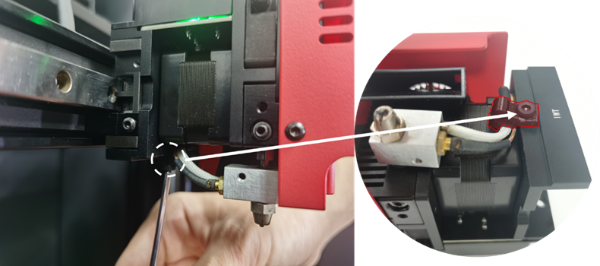 5.Use a 2mm wrench to loosen the set screw securing the hot end assembly to the printhead.