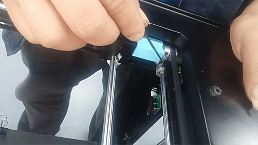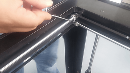 2. Use a 2mm hex wrench to remove the M3 retaining screw on the pulley. They are located at the end of the belt. Each rod has two retaining screws. There are 4 screws in total.
