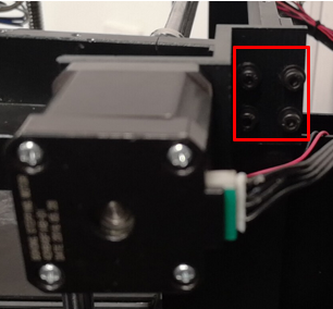 8.Remove the Y motor and its support frame. Firstly, you have to unscrew the four round head screws shown in figure 5. And please note that you have to hold the motor at the same time in case the motor drops on the ground.