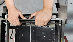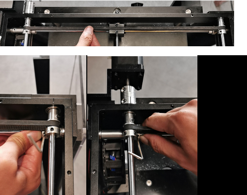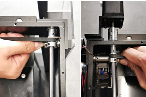 15. Push the belt pulley to their ends and pinch the belt to feel its tension. If the belt tension is qualified ,please tighten the screws.