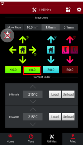 1. Press the Z home button. Once bed completely homes, press Z value button in Utilities page and set the height to be 20mm.
