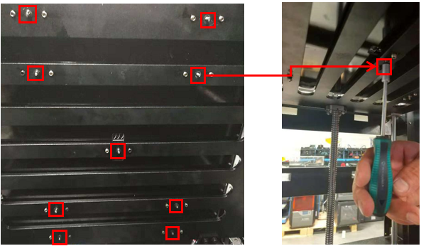10. Align the plate to match the screw holes on the Z platform. Tighten the five screws installed in last step to attach on Z platform.