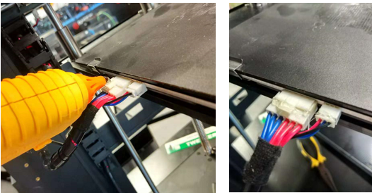 3. Carefully unplug the heating bed wires behind the heating bed.