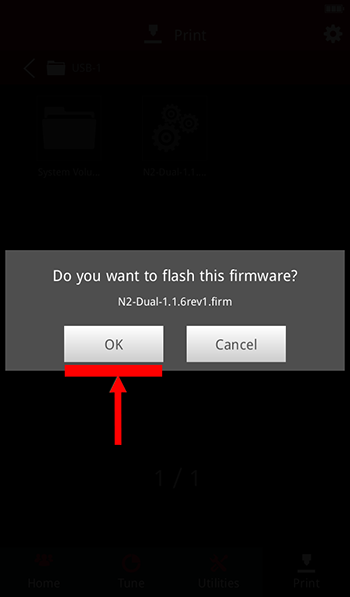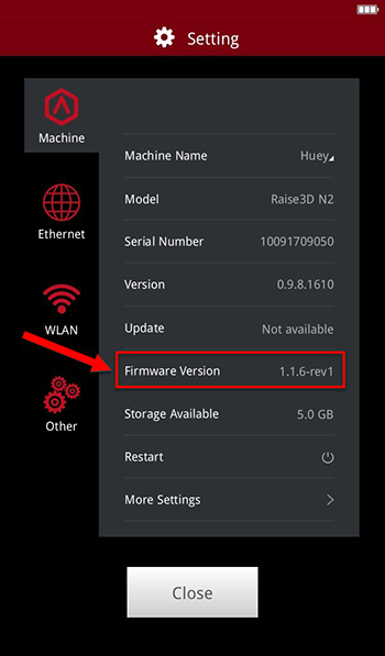 To verify the update, go back to the Settings menu to verify the firmware version matches the file used.