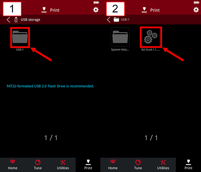 Select the USB drive with your firmware, inside the USB drive you will find the firmware file.
