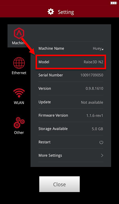 To verify the model of your printer, you can go to the settings menu on the touchscreen and see the “Model” line.