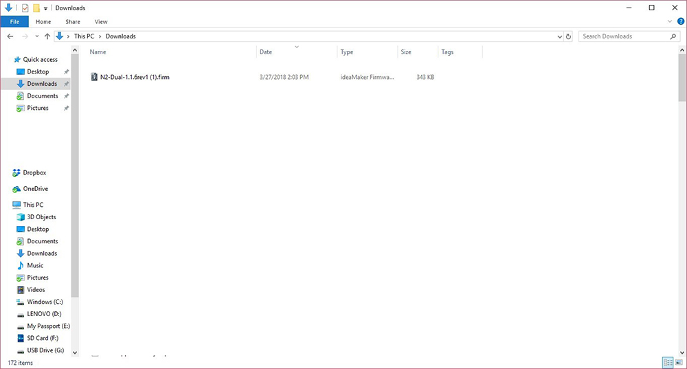 Once the firmware is downloaded, transfer it to a USB drive and plug the USB drive into the printer.