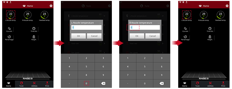 5. Press the Z-Home button. Once the homing is completed check the distance between the nozzle tip and build plate one final time.