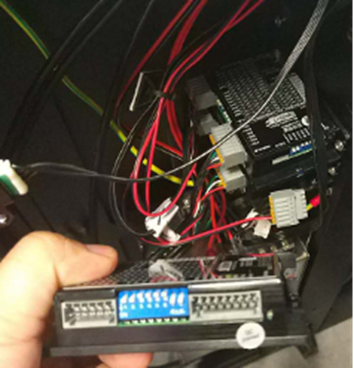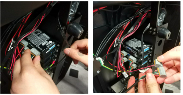 3. We will use the Z-axis stepper driver as the example for this document. Disconnect the two plugs from the driver to be replaced as shown in the following image.