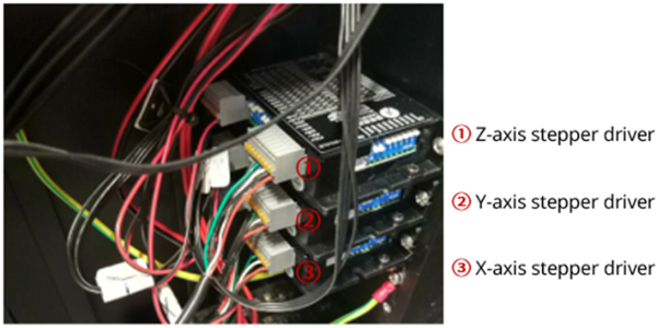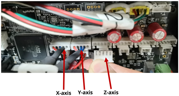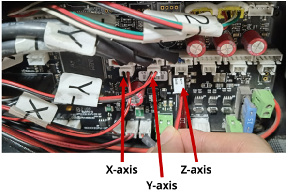 Note: Disconnect the plugs corresponding to the cables from the stepper driver for the X/Y/Z axes.