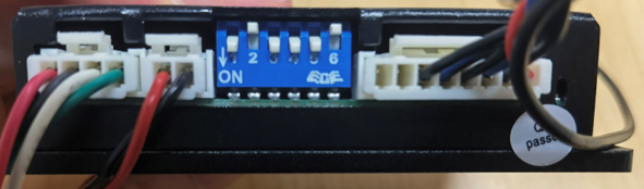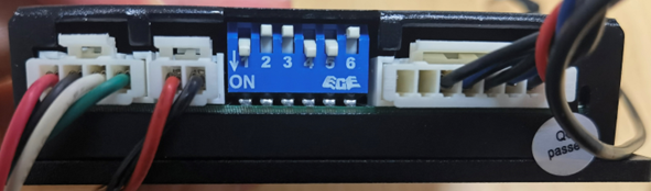 The current switches of the X/Y-axis stepper driver are shown in the image. Switches for 1, 4, and 5 are ON. Switches for 2, 3, and 6 are OFF.