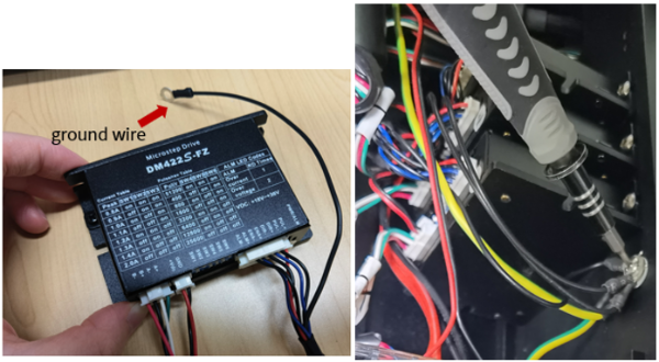 13. Screw in the ground wire of the stepper driver as shown in the image.
