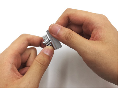 If necessary, it may be helpful to allow the heatsink block to rest on top of the optional silicone sock/cover to assist with securing the sock/cover to the aluminium heating block.