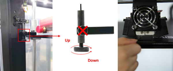 Note: Do not adjust the height of the build plate. Adjusting the build plate will affect the height of the left nozzle, if it has been adjusted, please re-calibrate the height of the left nozzle.