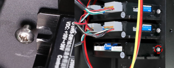 Next, using a Phillips head screwdriver, remove the grounding screw below the stepper drivers. With the screw removed, loop the grounding cable washer that is attached to the stepper driver signal cable, onto the grounding screw and re-install the screw to the side of the frame.