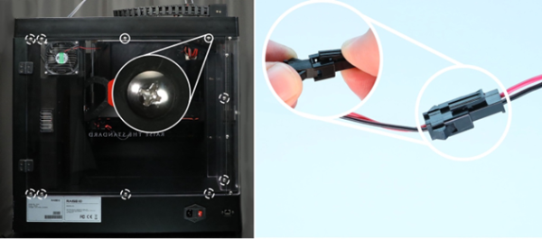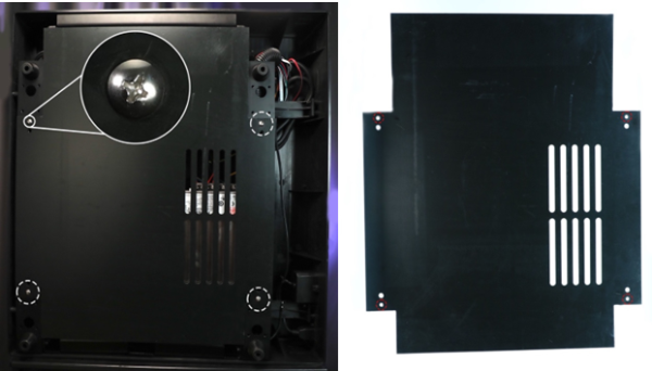 [!]When all the screws are removed the back and left side panel should be able to be removed, however the HEPA filter assembly is still attached. Most printers will have a small quick disconnect plug that you can use to quickly disconnect the filter fan from its cable.