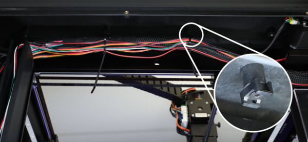 At this point the bottom of the printer can be quite frantic with multiple different cables going in all different directions. Using zip ties and the anchor points at the bottom of the machine cable manage all the excess cables and secure them to the machine’s undercarriage.