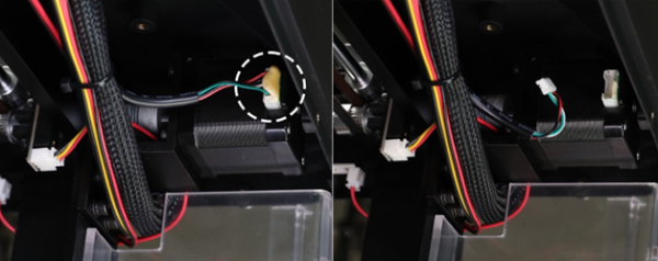 Grasping as close to the motor connector as possible, slightly wiggle and remove the stepper motor connector.