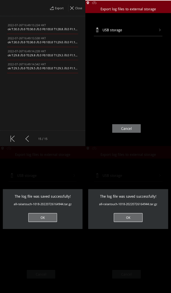 4.Insert the USB device into the USB port on the right side of the screen, click the "Export" button in the upper left corner, and export the file to the USB storage (refer to Figure 4).