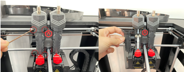 1. Unload the filament from the extruder where the extruder bearings needs to be replaced. While this tutorial uses the left nozzle as an example.