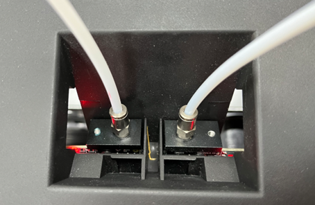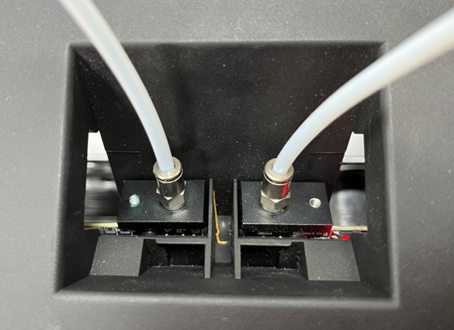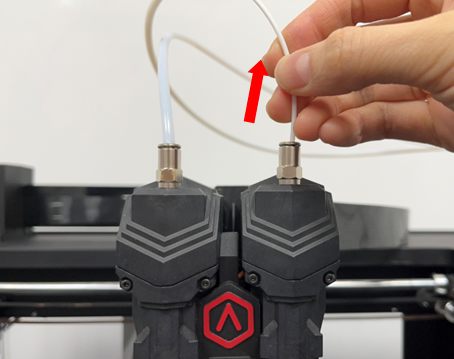Before replacing the filament run-out sensor seat, firstly, you need to unload the filament and unplug the filament tube on the quick connector. Here, we take the filaments in the left extruder and unload the left filament tube from the quick connector as an example.