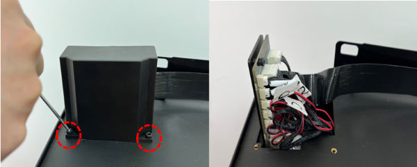 2)Remove the 3 screws with the 2 mm hex wrench, then remove the flat cable cover.