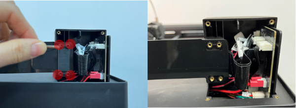 4. Install the PC cable support and the spacer. Put the PC cable support on the front cover, and put the spacer on it. Install the 4 screws on the spacer of the front cover with the 2.5 mm hex wrench, and install the spacer.