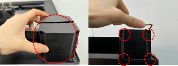 Figure 3 Remove the 2 screws on the spacer of the front cover with the 2.5mm hex wrench, then remove the front cover.