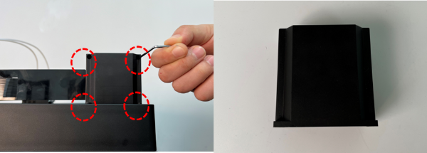 4. Install the PC cable support and the spacer. Put the PC cable support on the front cover, and put the spacer on it. Install the 4 screws on the spacer of the front cover with the 2.5 mm hex wrench, and install the spacer.