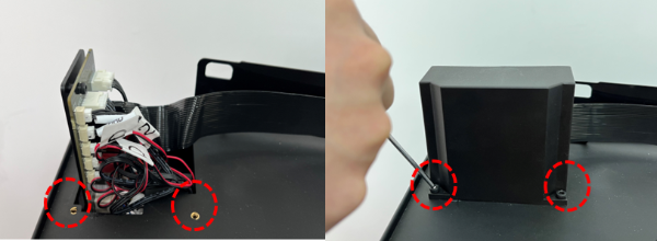 3. Install the 2 screws on the spacer of the front cover with the 2.5 mm hex wrench, and install the front cover.