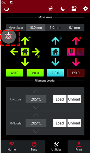 3. Push the print head carrier to move the extruder to a position suitable for operation.