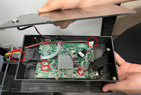 4. Unplug the 5 wires on the wiring board, as shown in the red circle, use a 2.5mm wrench to remove the 1 screw that fixes the ground wire and remove the touchscreen assembly.