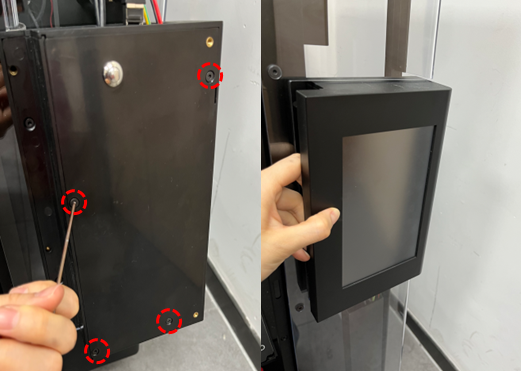 3. Close the touchscreen cover, tighten the 4 screws on the touchscreen assembly with a 2mm wrench, and put the touchscreen assembly back in place.