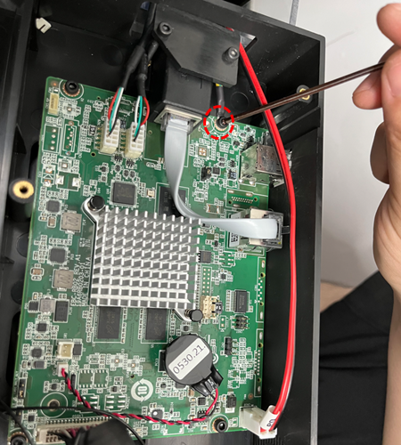 Figure 5 Unplug the 5 wires on the wiring board, as shown in the red circle, use a 2.5mm wrench to remove the 1 screw that fixes the ground wire and remove the touchscreen assembly.