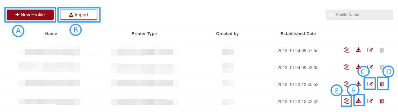 The My Slicing Profile module shows all of the saved slicing profiles.