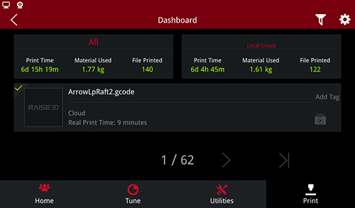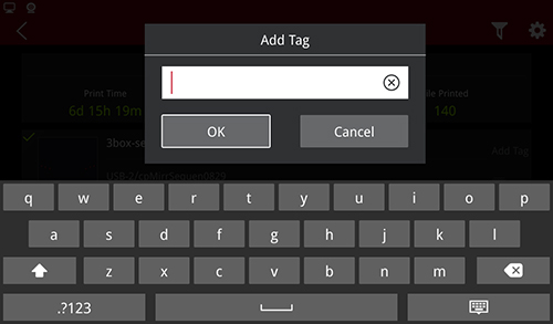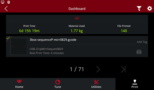 You can view all printed models on Dashboard. Click “Add Tag”, you can add labels for printed tasks. The icon in the upper left corner of the print file queue shows the success or failure information.