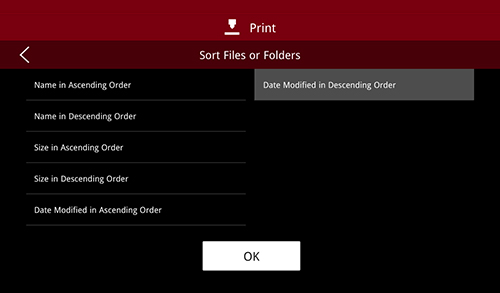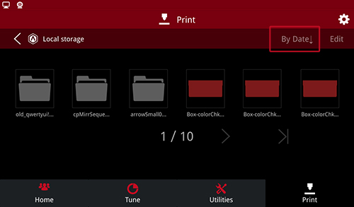 File Sort: click the sort button in the upper right corner to sort the printed files in the following ways.